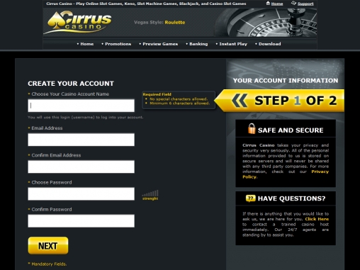 Клиентами Cirrus Casino могут становиться пользователи, достигшие двадцати одного года и не проживающие на территории стран, жителям которых запрещено открывать счета в данном казино. В число этих государств входят почти все бывшие республики Советского Союза, многие страны Восточной Европы, Таиланд, Пакистан и другие (полный список доступен на официальном сайте).