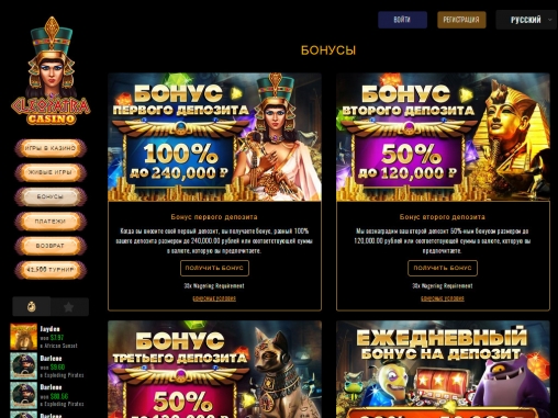 Историческое наследие и культура Египта – это одна из популярнейших тем в гемблинге. Ей посвящены многочисленные игровые аппараты для оффлайновых заведений и слоты для веб-порталов. Текущий обзор посвящен онлайн-казино, выдержанном в древнеегипетском стиле. Если точнее, оно перенесет во времена правления царицы Клеопатры, в честь которой назван сайт.