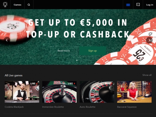 Онлайн-портал codeta.com привлекает клиентов, в первую очередь, огромным разнообразием азартных игр с живыми дилерами. Кроме того, заведение предлагает внушительную подборку моделей на генераторах случайных чисел производства нескольких известных компаний. Обо всех плюсах и минусах сайта читайте далее в подробном обзоре.