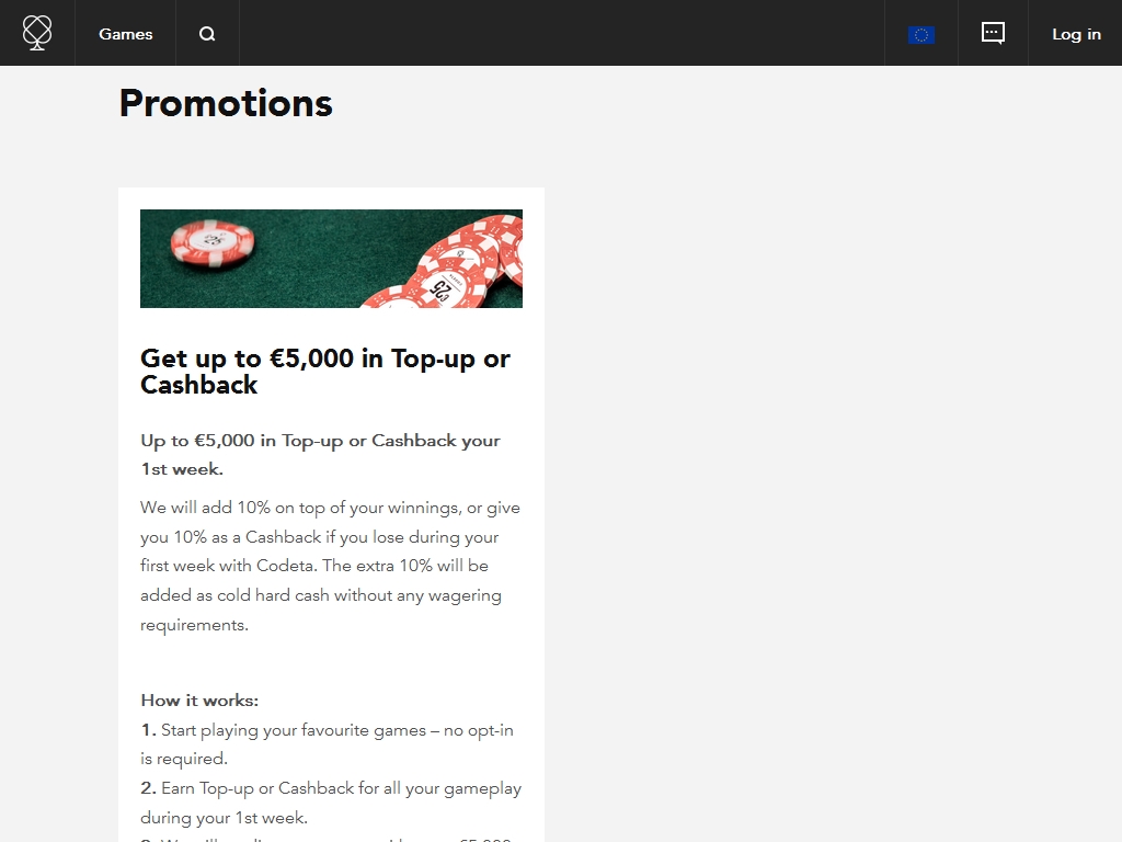 Владельцем и оператором Codeta является хорошо известная в сфере онлайн-гемблинга компания EveryMatrix, которой принадлежит несколько знаменитых игорных порталов. Она работает по лицензиям Кюрасао и Мальты. Их копии можно посмотреть, кликнув по логотипам соответствующих организаций, расположенным в нижней части экрана.