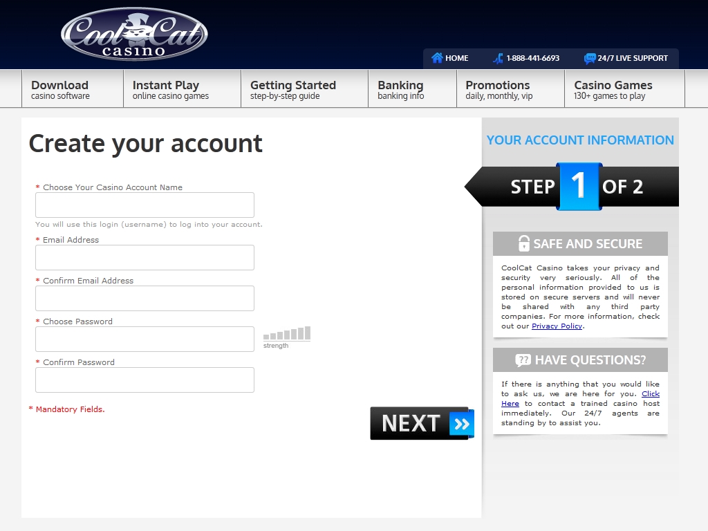 Новых клиентов CoolCat Casino, которые впервые открывают счета для игры на реальные деньги в этом казино, ждет необычный приветственный бонус. Как только он регистрируются, они могут перейти кассу и ввести в специальное окошко указанный код, и им будут начислены сто долларов.