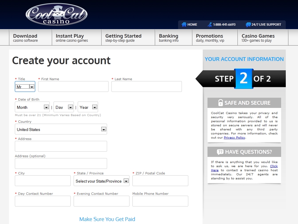 CoolCat Casino принимает пользователей далеко не изо всех стран. На сайте казино (в разделе с правилами) можно скачать список государств с указанием услуг, которыми могут пользоваться их жители в данном казино. Обязательно изучите его, прежде чем регистрироваться в CoolCat Casino и приступать к игре. Мы также рекомендуем уточнить данный пункт в службе поддержки.