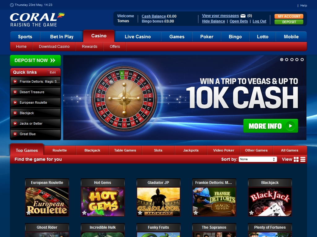 Онлайн-казино Coral Casino является частью крупного портала coral.co.uk, который специализируется на букмекерских ставках, а также предлагает, покерный зал, бинго-холл, разделы с лотереями, играми с живыми дилерами и прочими азартными развлечениями. Coral представляет собой известный английский бренд, имеющий более 1700 букмекерских контор по всей Великобритании и более двадцати пяти реальных казино. Во всемирной сети он работает на так давно, однако уже успел зарекомендовать себя с лучшей стороны.