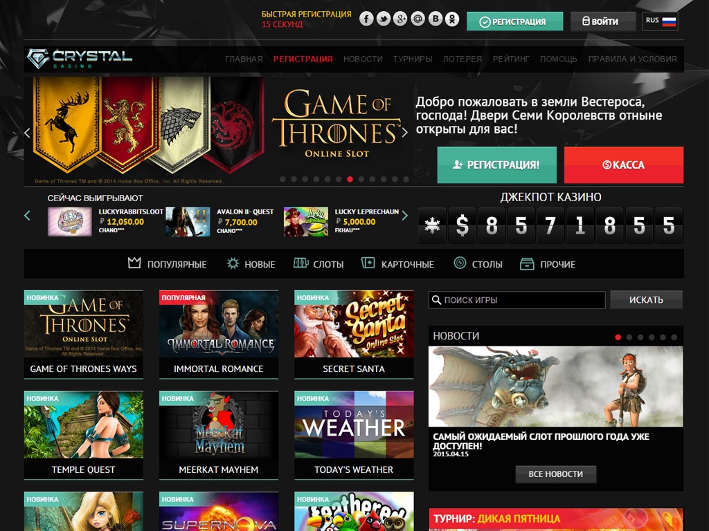 Полностью адаптированный для русскоязычных игроков веб-сайт Кристалл обладает многочисленными достоинствами, но, надо признать, не лишен недостатков. Поэтому, прежде чем регистрироваться, внимательно изучите наш обзор, посвященный данному заведению.