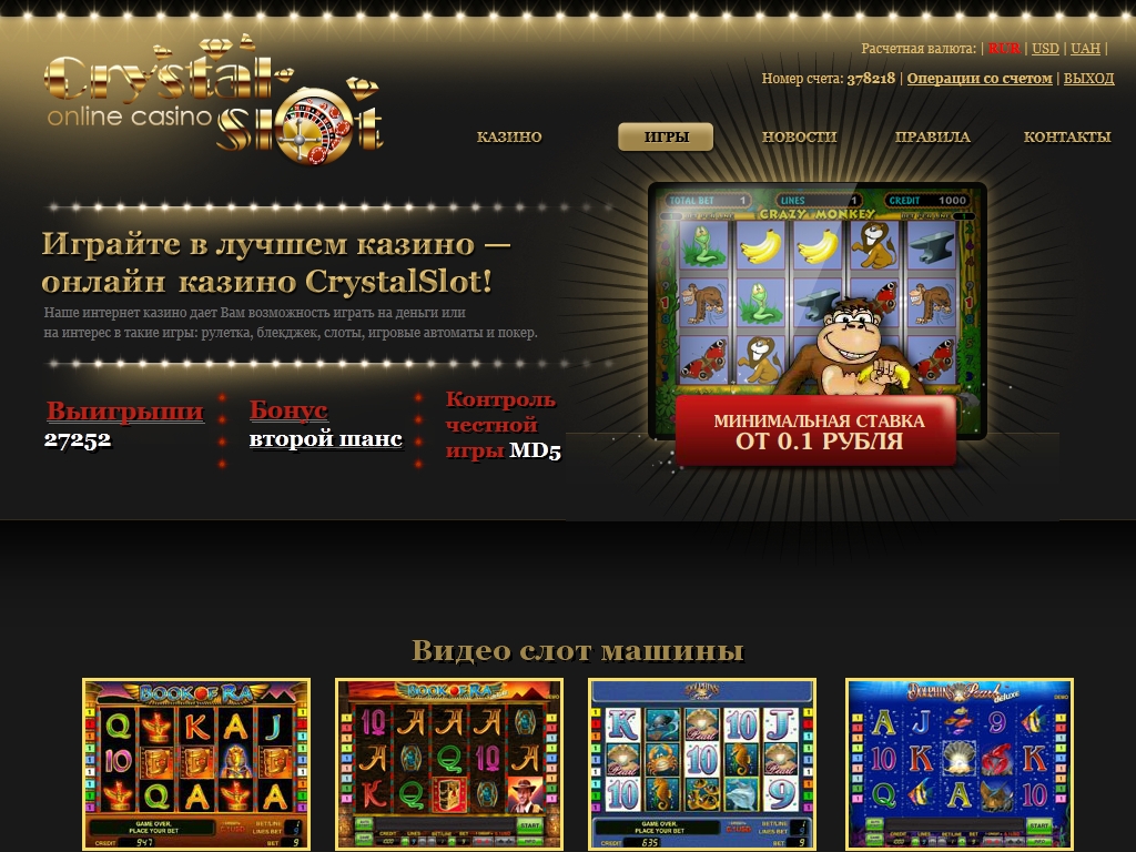 Начать освоение игрового пространства онлайн казино CrystalSlot можно с ознакомления с видео слот машинами. На данный момент на сайте их восемнадцать, но перчень доступных игр постоянно пополняется. Имеется также десять автоматов. Семь видов покера привлекают тех, кто не представляет себе казино без этой популярной игры! Классический блэкджек и