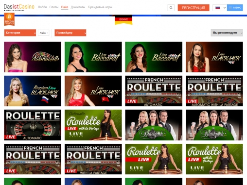 DasistCasino live предлагает разные версии рулетки, блэкджека, покера и других азартных игр. Дилеры владеют разными языками. Так, есть столы, которые обслуживают русскоязычные крупье.