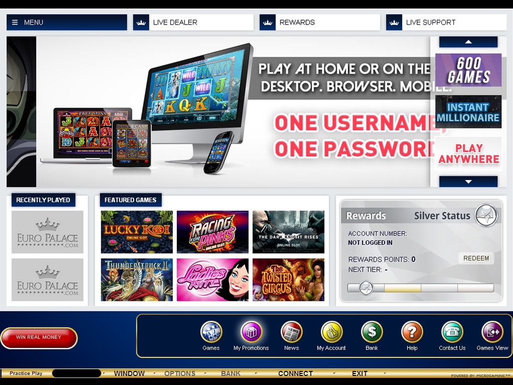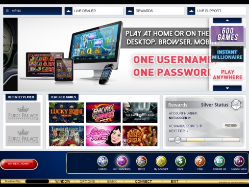 Подобно большинству крупных сайтов на софте данного бренда, «Евро Палас» дает возможность клиентам играть во флэш-версии, не требующей загрузки, и посредством устанавливаемой программы. Надо признать, что второй вариант является гораздо более функциональным, хотя игра прямо в браузере зачастую бывает более удобной.