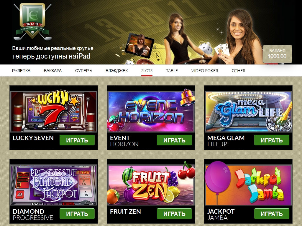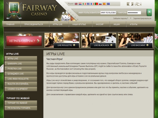 Fairway является одним из проектов компании Visionary iGaming, владельцем популярной игровой платформы для казино с настоящими крупье. Соответственно, заведение предлагает широкий выбор столов с реальными дилерами, работающими в собственной студии ViG.