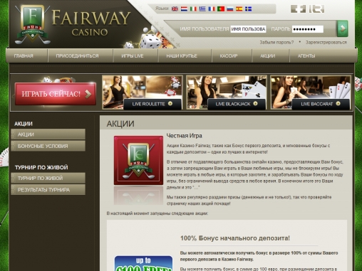В Fairway регулярно проводятся турниры. Например, популярностью пользуются состязания на live-рулетке. Так что следите за расписанием.