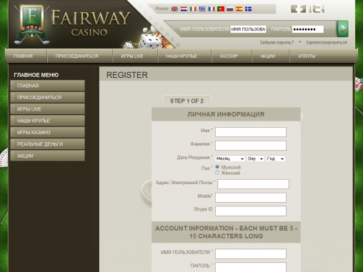 Играть в Fairway можно в разных валютах, включая евро и доллары. Депозиты принимаются многими удобными способами, в числе которых Visa, MasterCard, Delta, Skrill, Neteller и другие популярные методы.