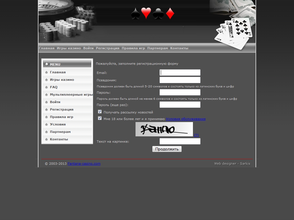 Дизайн Фантана выполнен в серых тонах, которые разбавлены красными и синими оттенками. Однозначно, это не самый худший вариант оформления лобби-панели. Но при этом нельзя сказать, что дизайн очень хорош. Нет, он обычный: ничего плохого, но и ничего примечательного. Красиво смотрится картинка наверху страницы, на которой изображены фишки, деньги и карты. Красно-черные карточные масти привлекают глаз и смотрятся очень уместно. Но на этом плюсы дизайна закончены. Во всем остальном оформление ничем не примечательно. Все меню написано на русском языке, поэтому русскоговорящие пользователи не будут испытывать проблем во время игры.