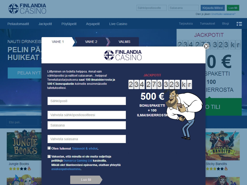 В Finlandia действуют разнообразные акции. Новичкам предлагается стартовый пакет:
