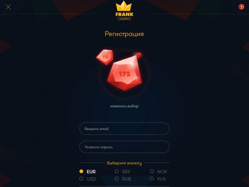Игровой валютой в Frank Casino могут быть доллары США, евро или российские рубли.
