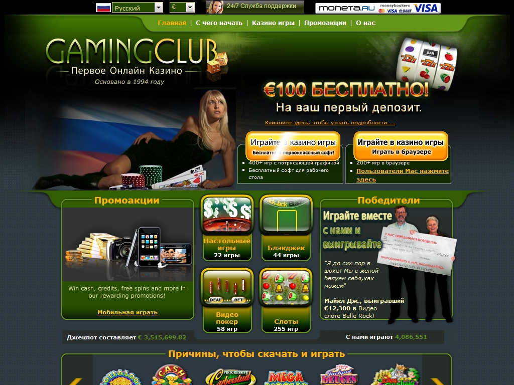 «Первое онлайн казино. Основано в 1994 году». Именно эта надпись встречает всех посетителей сайта Gaming Club Online Casino. Действительно, именно это заведение стало первым казино, которое приняло интернет пользователей. И, несмотря на огромную конкуренцию в этой области, оно до сих пор успешно функционирует. Если вы хотите прикоснуться к легенде, обязательно зарегистрируйтесь и поиграйте в казино Gaming Club Casino. Тем более что ему есть, чем вас порадовать.