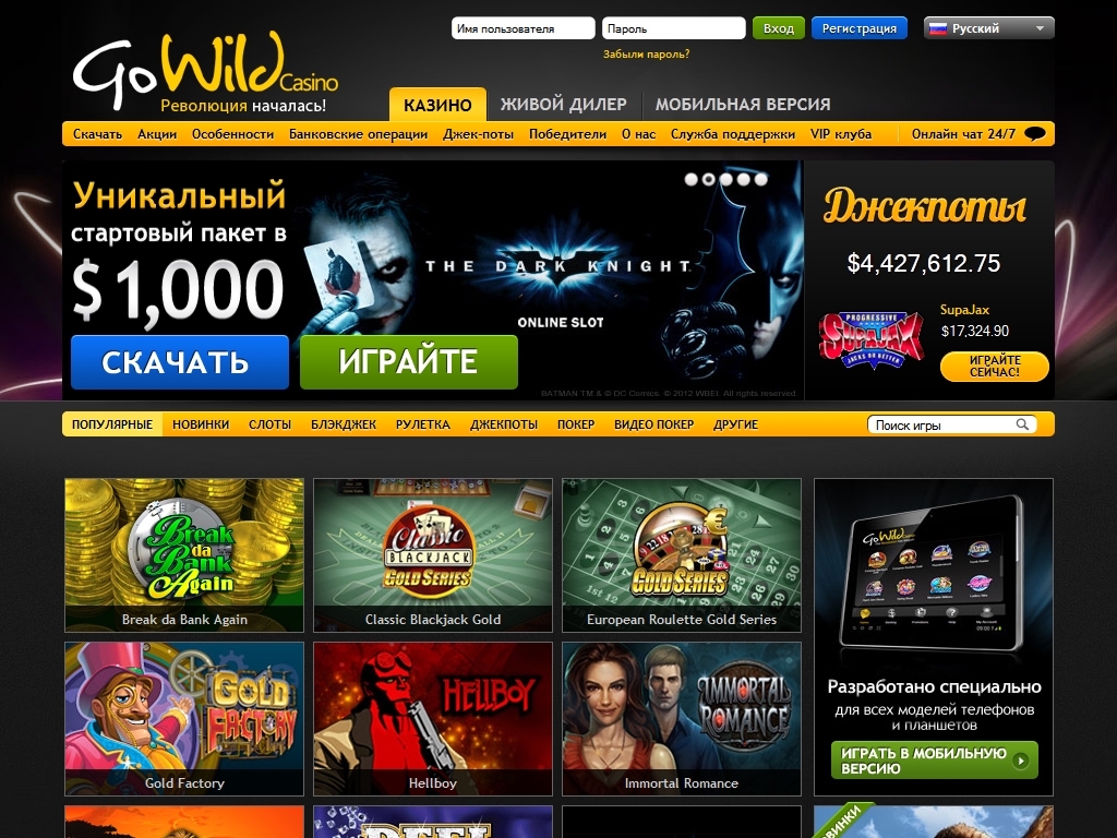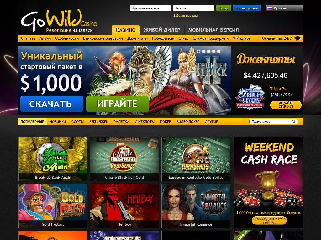 Казино «ГоУайлд» работает на платформе Microgaming, предлагая клиентам невероятный выбор моделей данного производителя. При этом запускать игры можно прямо в браузере, используя их флэш-версиии, либо же скачать и установить клиентскую программу.