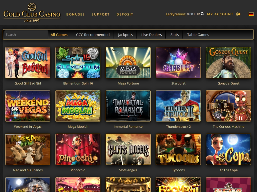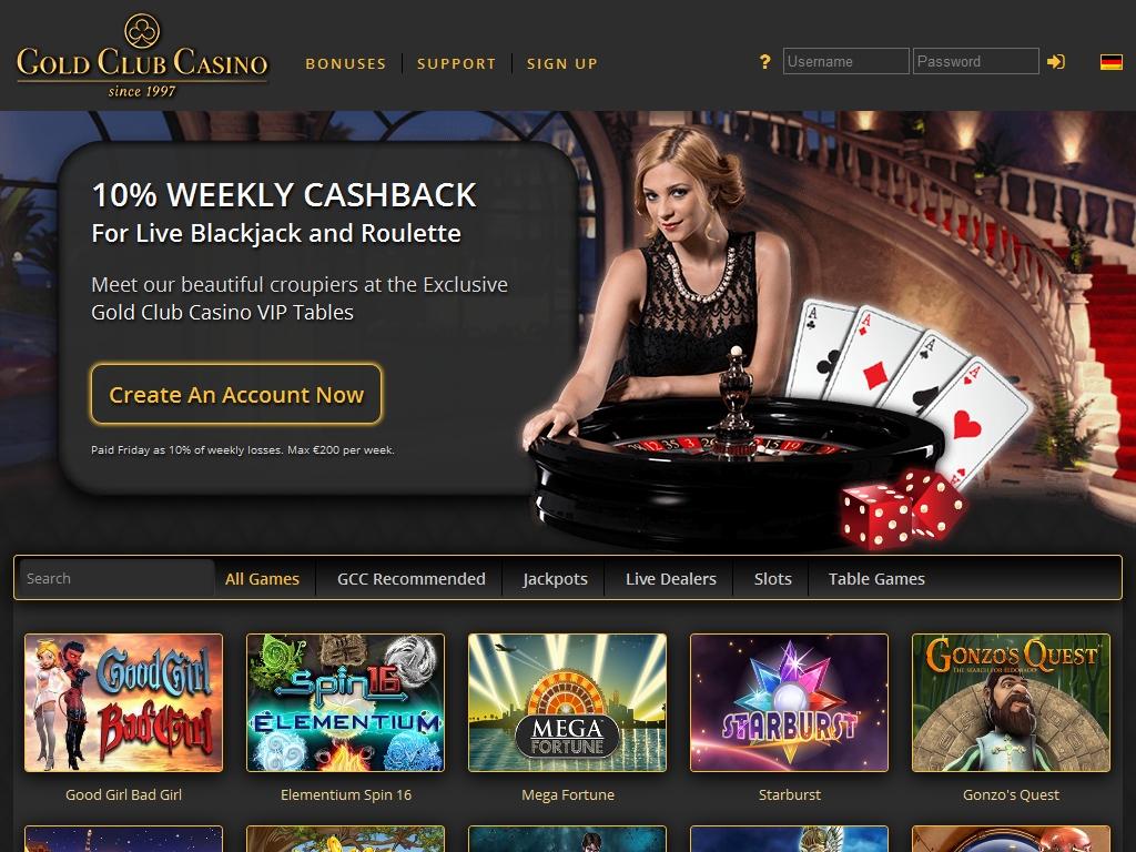 Этот обзор посвящен игорному порталу GoldClubCasino.com (не путать с ClubGoldCasino.com), название которого переводится как «Клуб золота». Заведение является одним из старейших в мировом онлайн-гемблинге, ведь оно принимает клиентов с 1997 года. Обо всех его особенностях рассказывается далее в статье.