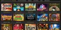 Простой темный фон, изящные золотые элементы дизайна, крупные рекламные баннеры через всю главную страницу, многочисленные яркие логотипы игр, удобное меню – вот чем с первого взгляда привлекает оформление рассматриваемого портала.