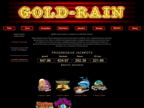 Казино Голд-Рейн можно назвать пустышкой в красивой обертке. Симпатичный дизайн – единственное, чем может похвастаться заведение. Оно не рекомендуется к игре.