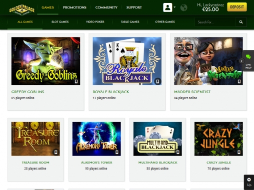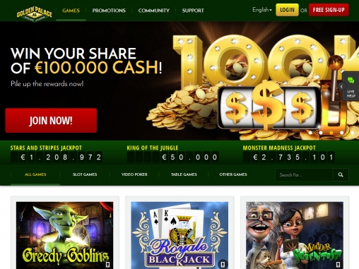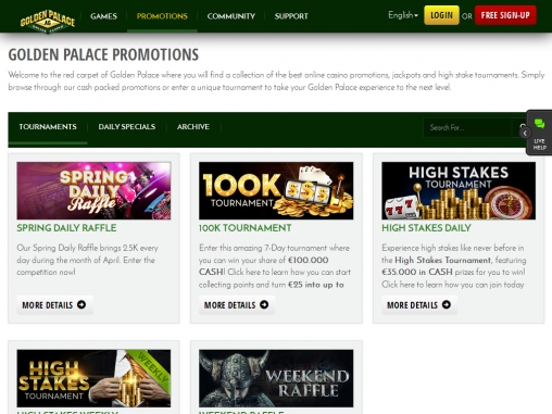 Многие игры дают возможность сорвать прогрессивные джек-поты, размеры которых исчисляются миллионами долларов. Также регулярно проводятся турниры с участием большого количества пользователей. В Голден Палас уже давно реализована возможность игры с живым дилером. Кроме того, за многими столами могут одновременно играть несколько клиентов, общаясь друг с другом.