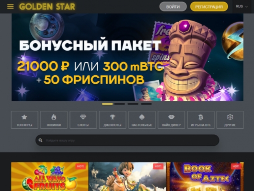 Данная статья посвящена игорному сайту, который работает на рынке онлайн-гемблинга уже несколько лет и пользуется довольно высоким спросом у пользователей из разных стран. Казино «Голден Стар» постоянно развивается, расширяет ассортимент игр, улучшает бонусную программу и в целом повышает качество сервиса, поэтому мы уже не в первый раз обновляем его обзор. Давайте разбираться, чем заведение может порадовать вас в настоящее время.