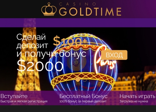 Встречайте новое онлайн-казино Goldtime, которое наверняка заинтересует вас отличной подборкой оригинальных игр ведущих брендов, интересной бонусной программой, розыгрышем джекпотом и дополнительными акциями для клиентов. Об услугах игорного портала рассказывается далее в обзоре.
