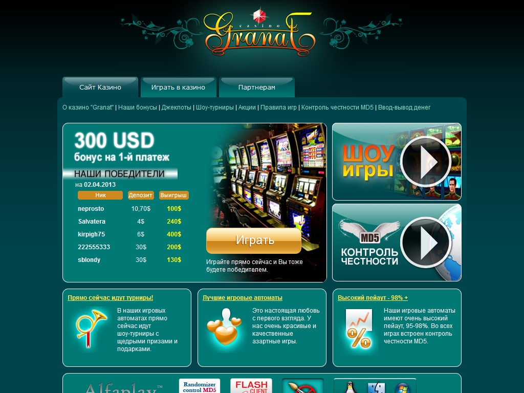 CASINOZ.RU НЕ РЕКОМЕНДУЕТ ИГРАТЬ В КАЗИНО ГРАНАТ!!!