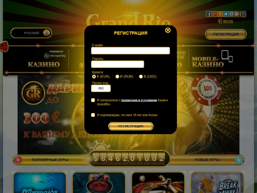 Зарегистрироваться в Grand Rio можно за несколько минут. Вам придется заполнить анкету (обязательно вносите достоверные данные) и подтвердить адрес электронной почты.