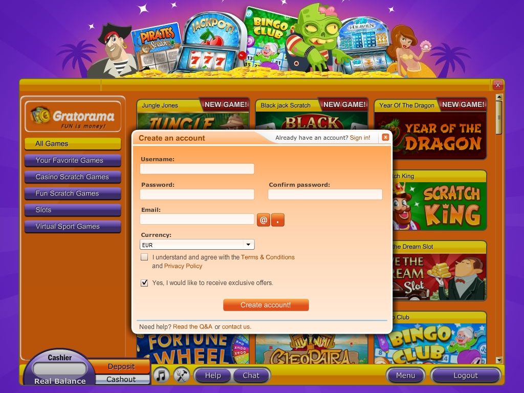 Чтобы получить доступ ко всем услугам и играть на деньги в Gratorama, вы должны открыть счет. Процесс регистрации очень простой, но нужно внимательно заполнять анкету и следовать всем инструкциям.