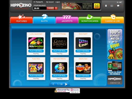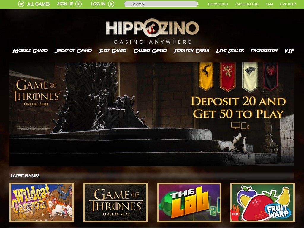 Безусловно, оформление «Гиппозино» способно заинтересовать каждого посетителя. Классный логотип с силуэтом разевающего пасть гиппопотама, впечатляющие баннеры с рекламой игры, бонусов и джекпотов, нестандартная структура сайта, броские шрифты – все это дает понять случайному гостю, что он оказался в казино, которое способно многим его порадовать.