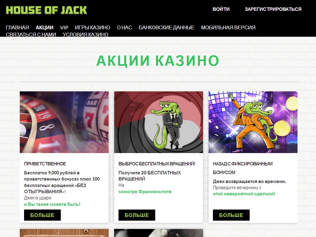 Рассмотрим основные акции, действующие в House of Jack: