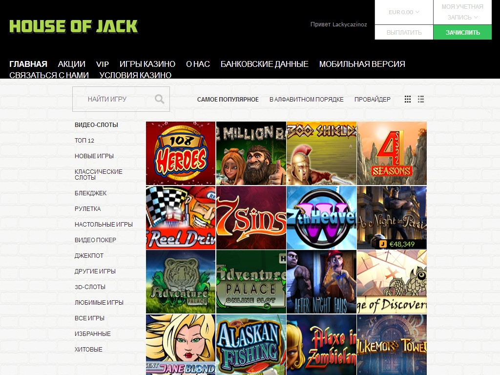 В House of Jack представлены игры производства Microgaming, Betsoft, Quickspin и Spigo. На сайте реализована многофункциональная система отбора моделей по нескольким параметрам.