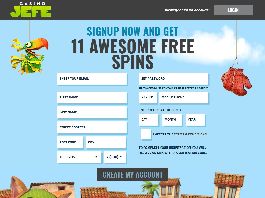 Ниже идет анкета регистрации, позволяющая открыть аккаунт прямо со смартфона. Отметим, что действующим клиентам заведения не нужно регистрироваться для игры в мобильном казино «Джефе».