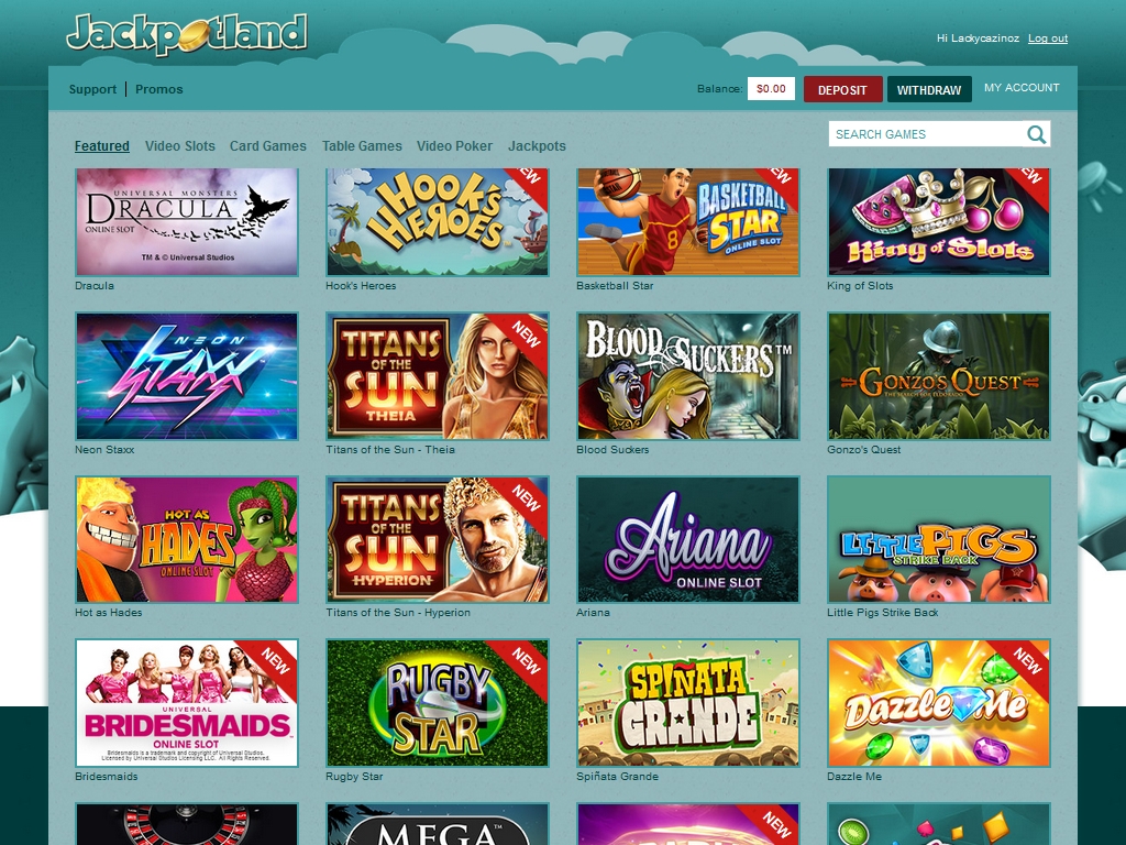 Казино Джекпотлэнд это казино с красивым дизайном и ярким оформлением!На сайте предоставлен широкий ассортимент различных азартных игр!Отличная бонусная политика!Множество различных акций!