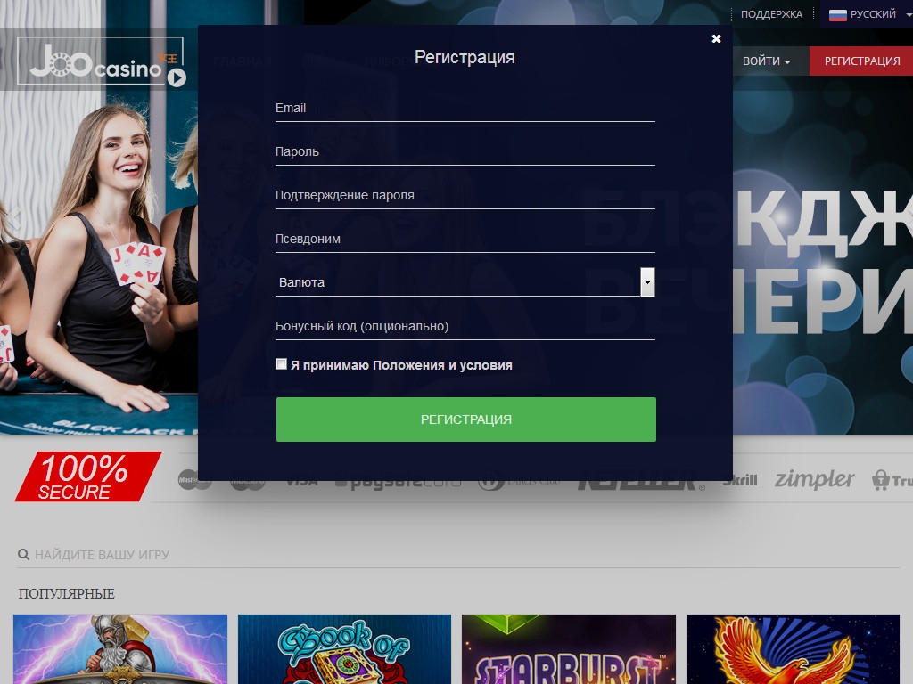 Будьте готовы по запросу администрации выслать копии документов, которые подтверждают вашу личность. Подробные условия использования разных платежных систем и другую информацию, касающуюся финансовых вопросов, уточняйте в официальных правилах на сайте казино Joo.