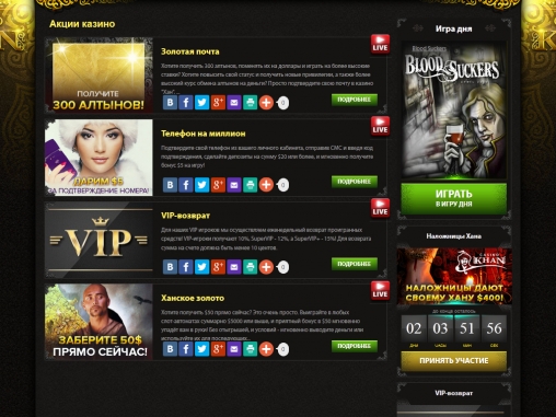 - Кроме того, особые акции предлагаются хайроллерам. Статус VIP-игрока присваивается администрацией за определенную сумму, в целом внесенную на счет. У него есть несколько категорий, о которых читайте в правилах на сайте.