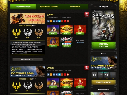 Khan производит очень хорошее впечатление. Так как заведение молодое, не будем торопиться с общими выводами относительно качества предоставляемых услуг, но нельзя не отметить хороший выбор игр, внушительный ассортимент поощрительных акций, наличие турниров и многое другое, что доступно на сайте.