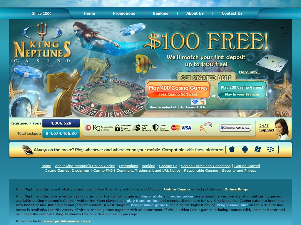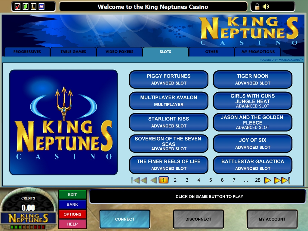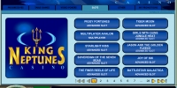 Сайт King Neptune’s Casino доступен лишь на английском языке. Играть в казино можно во флеш-версии, в которой предлагается около двухсот игр, или в скачиваемом варианте, в котором игр в два раза больше. Кроме того, программа онлайн казино, установленная на компьютер, открывает доступ к другим возможностям.