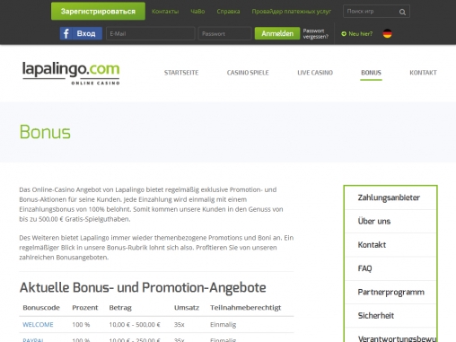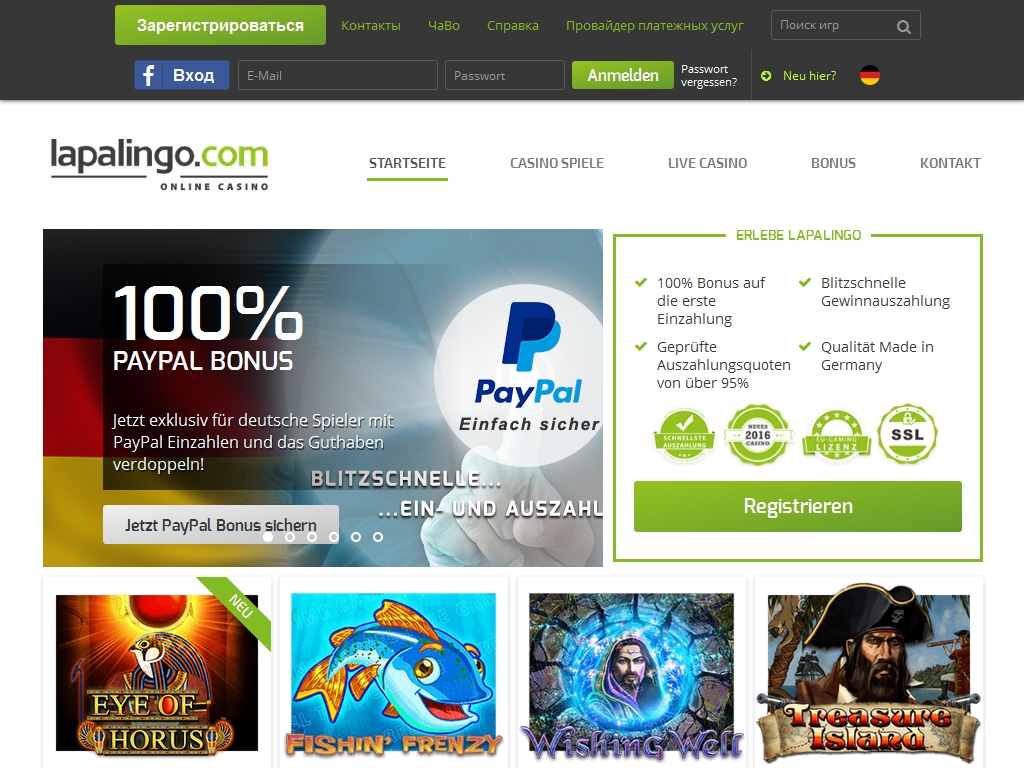 Lapalingo.com – качественное онлайн-казино с широким ассортиментом игр, лицензией известного регулятора, отличной бонусной программой, мультиязычностью и мультивалютностью, а также с множеством других достоинств, о которых вы можете узнать дальше.