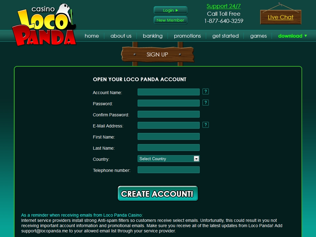 Loco Panda Casino предлагается только на английском языке.
