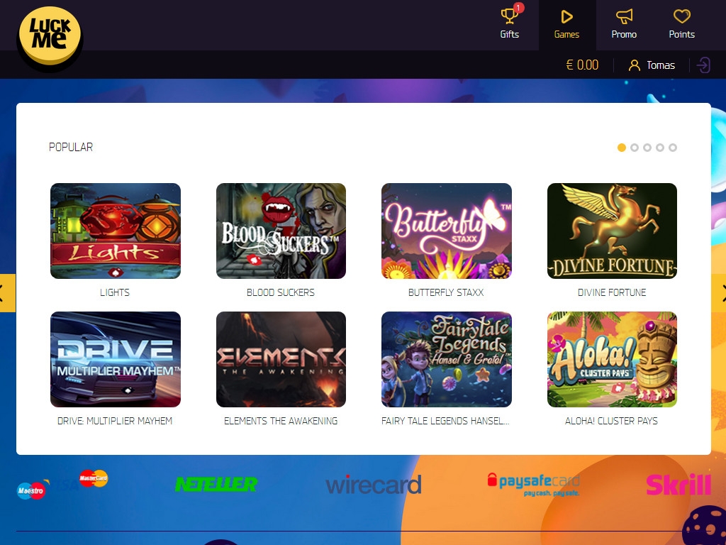 В Luck Me доступны модели NetEnt и других известных разработчиков. Клиентам предлагаются многочисленные видео-слоты, настольные и карточные игры, а также азартные развлечения других жанров.