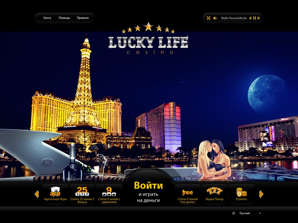 Пожалуй, оформление Lucky Life Casino – это его главное достоинство. На главной странице изображены девушки в купальниках, которые нежно (даже слишком нежно, что вызывает некоторые подозрения) обнимаются в джакузи яхты, находящейся в бухте возле мегаполиса.