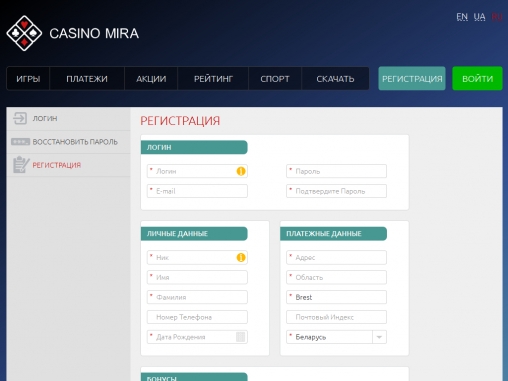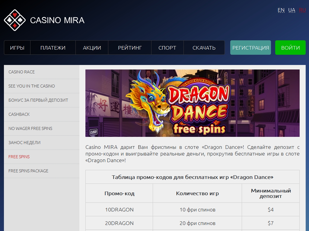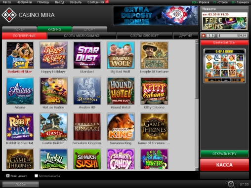 Веб-сайт CasinoMira.com предлагает посетителям азартные онлайн-игры и покерный зал, но в этом обзоре мы рассмотрим лишь его интернет-казино, а другому разделу будет посвящена отдельная статья.