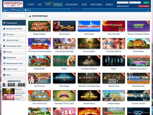 Как можно догадаться по его названию, интернет-портал marathonbet.com известен, прежде всего, букмекерской конторой, предлагающей широкий выбор ставок на огромное количество спортивных событий. О данном тотализаторе рассказывается в отдельном обзоре на нашем сайте. Но данное заведение также пользуется спросом у любителей других видов азартных развлечений. Ниже мы поговорим об интернет-казино «Марафон Бет», его основных достоинствах и возможных недостатках.