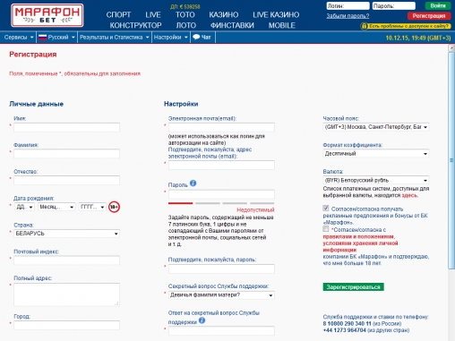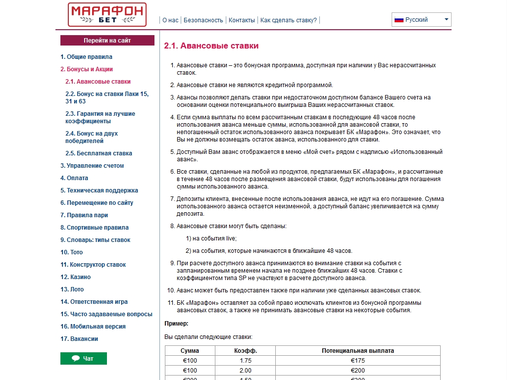 Для связи с представителями саппорта Marathon Bet предусмотрены онлайн-чат, телефон (бесплатный номер для жителей РФ), адреса электронной и обычной почты.