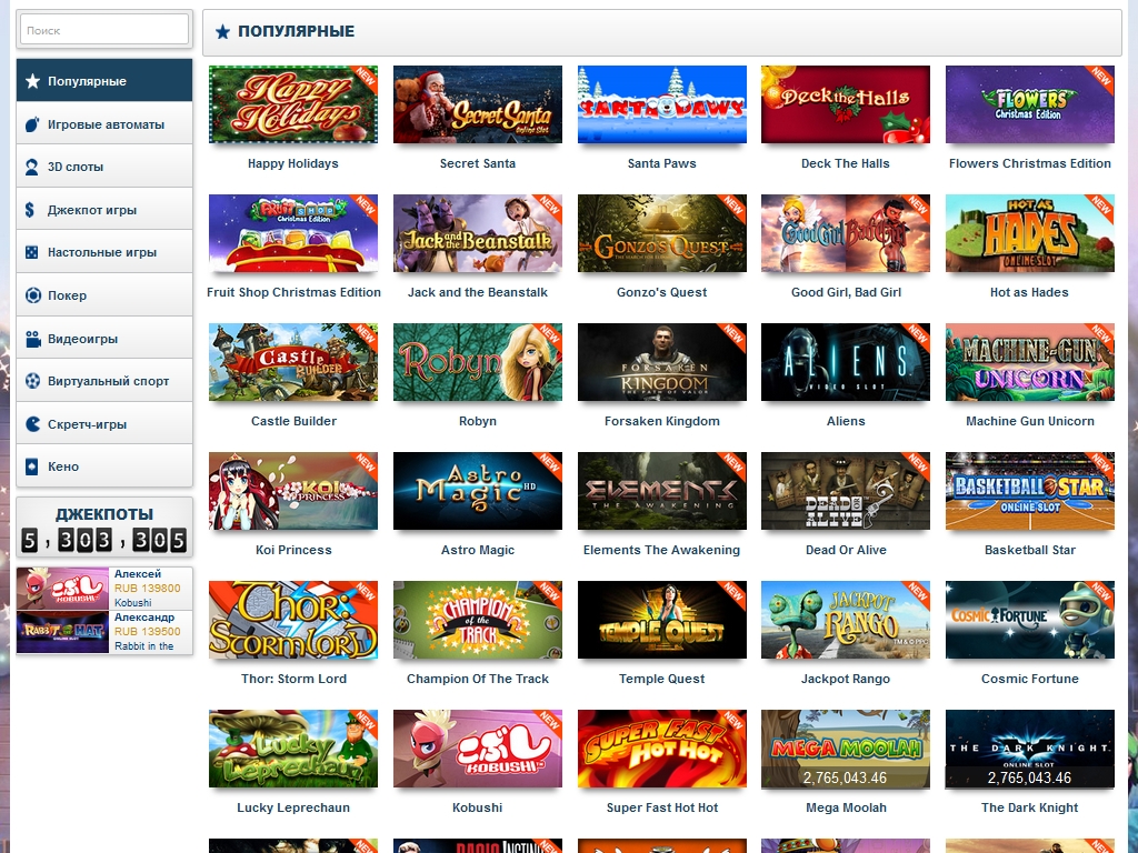 На сайте модели каталогизированы по следующим категориям: популярные, 3D-слоты, игры с джекпотами, настольные модели, покер, видеоигры, кено, скрэтч-карты. Думаем, по названиям групп вам должно быть понятно, что в них входит.