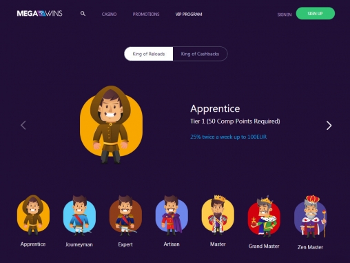- King of Reloads – еженедельный кэшбек, начинающийся с 7% возврата;