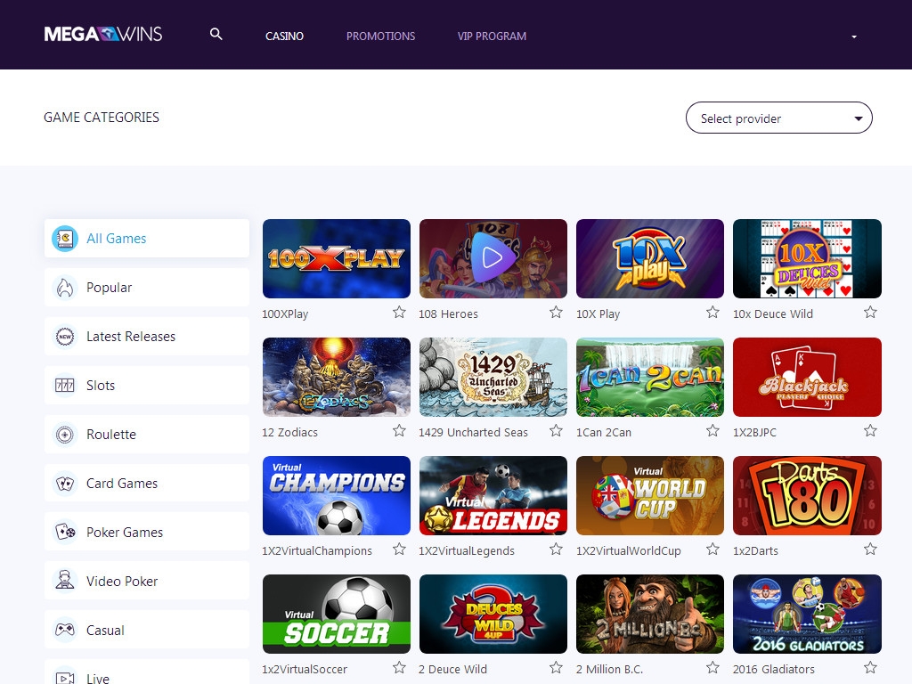 В Megawins представлены азартные игры большинства популярнейших брендов, включая Microgaming, NetEnt, Play’n GO, Thunderkick, iSoftBet, NYX и Elk Studios.