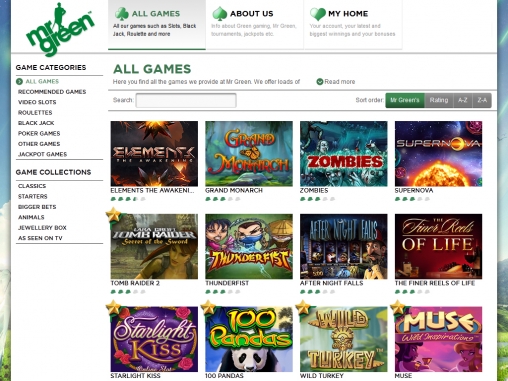 Если учесть, что казино Mr Green не предлагается в скачиваемой версии, выбор представленных в нем игр приятно удивляет. Здесь есть все традиционные игры (блэк-джек, крэпс, рулетка, покер, видео-покер) с различными разновидностями правил, масса оригинальных слотов, кено, скрэтч-карты, виртуальный ипподром и многое другое. В казино регулярно разыгрываются огромные джек-поты и вводятся новые игры. Также в этом заведении практически ежедневно проводятся турниры между игроками.