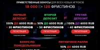 - По пятницам действует 50% бонус до шести тысяч рублей плюс семьдесят пять фри-спинов.