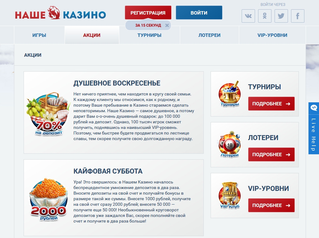 «Наше казино» предлагается исключительно на русском языке.